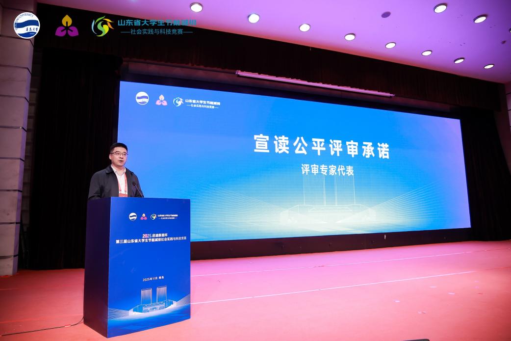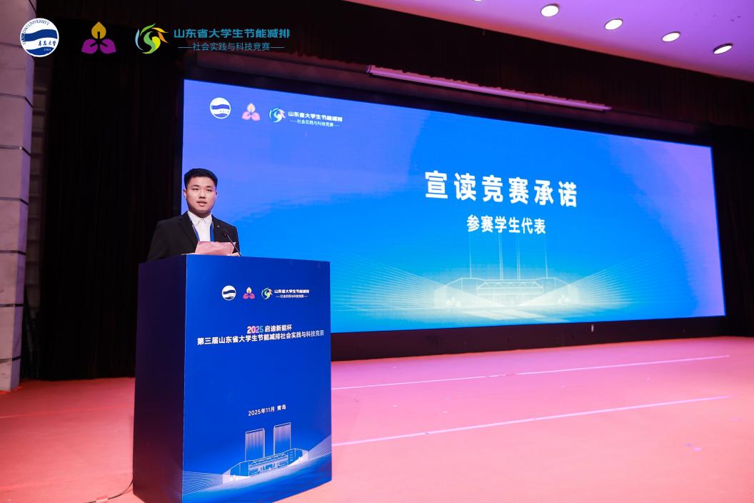 11月21日下午,2025“启迪新能杯”第三届山东省大学生节能减排社会实践与科技竞赛开幕式在我校隆重举行。本届竞赛由全国大学生节能减排社会实践与科技竞赛委员会、山东省教育厅高等教育处指导,山东能源学会主办,青岛大学承办,启迪青业新能源有限公司协办。本届竞赛旨在深入贯彻国家“双碳”战略部署,推动绿色低碳发展,强化大学生创新实践能力培养,为区域生态文明建设与产业绿色转型凝聚青年力量。