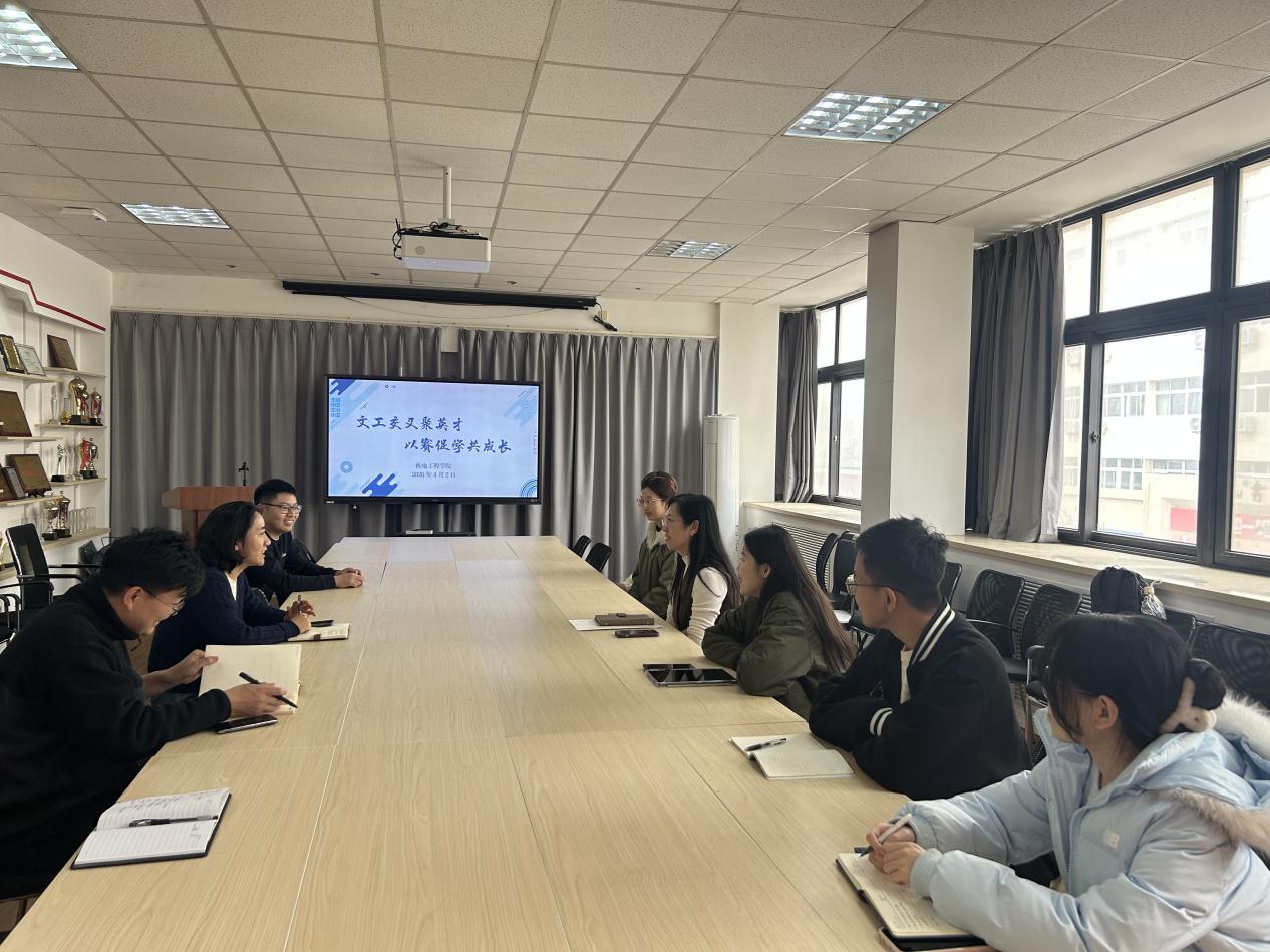 为全面提升人才培养质量,进一步加强工科与人文社科的协同创新,推动学科交叉融合赋能高水平竞赛,4月2日下午,我院与文学与新闻传播学院开展“文工交叉聚英才,以赛促学共成长”座谈交流会。文学与新闻传播学院党委副书记李晓燕,我院党委副书记赵斐斐、院长助理皮信信、工业设计系教师刘文杰、学生代表参加活动。